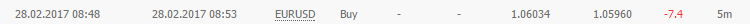 28.02.2017 EURUSD Buy Net Profit = - 7.4 pips