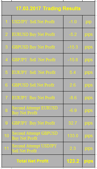 17.03.2017 Trading Results = + 123.2 pips